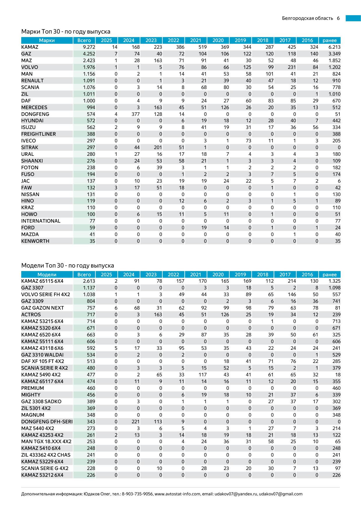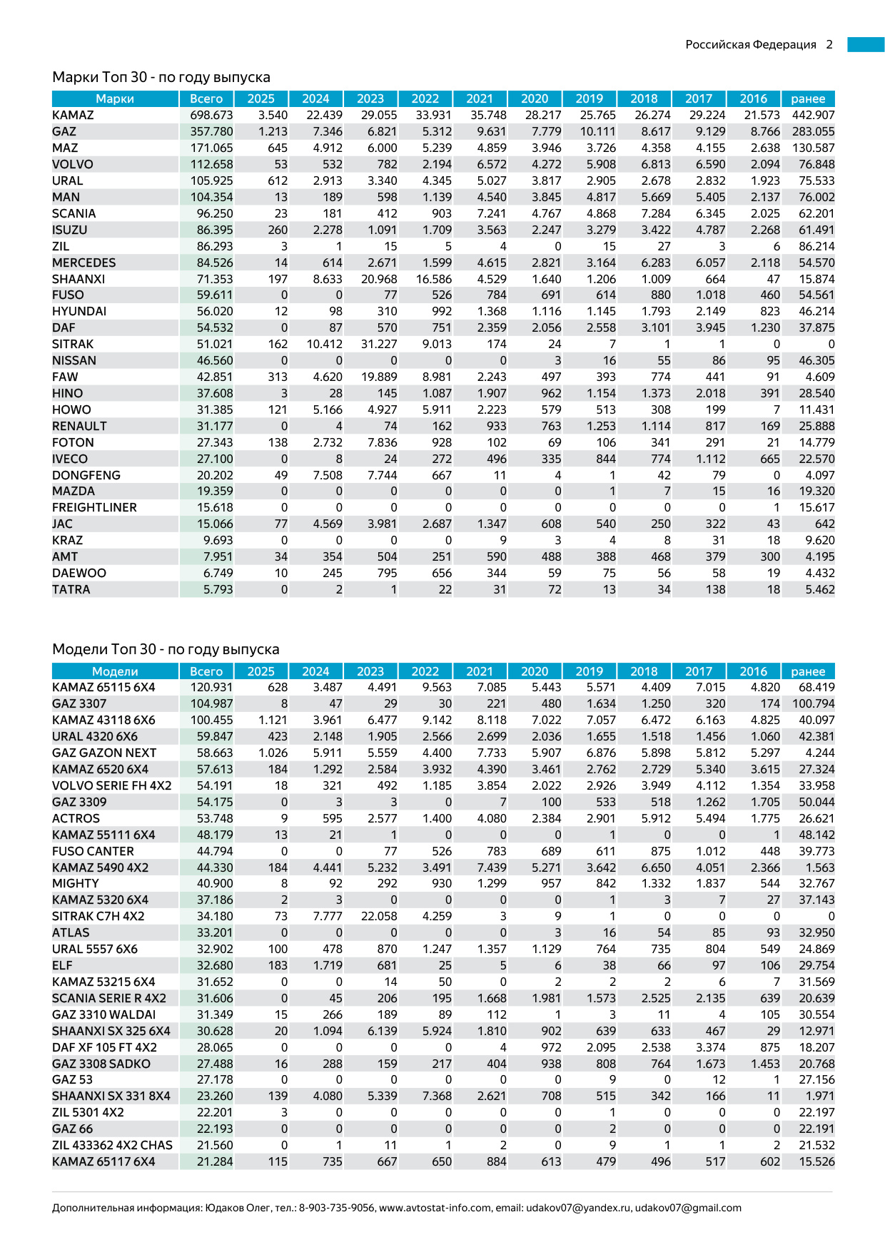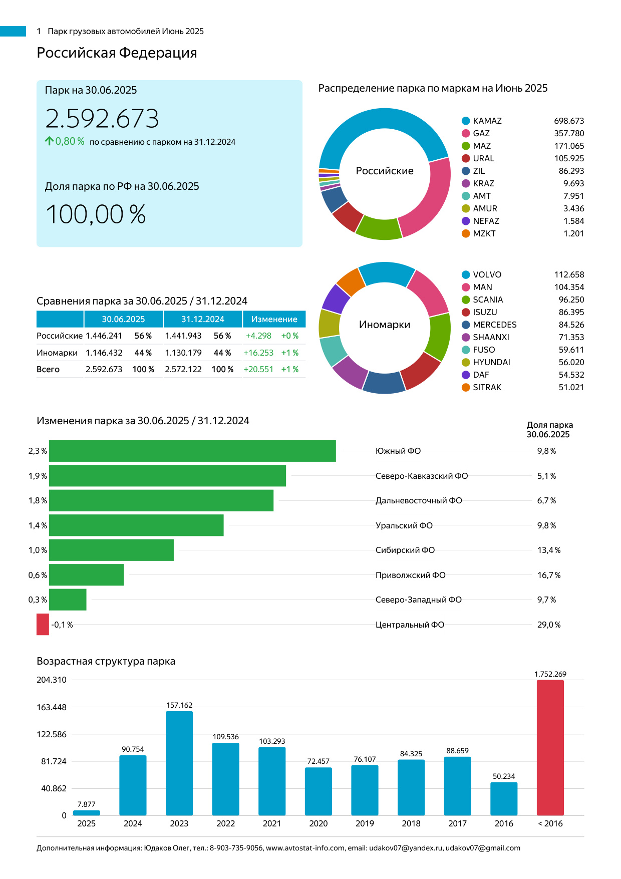 Полугодовой отчёт о структуре зарегистрированного автомобильного парка России.