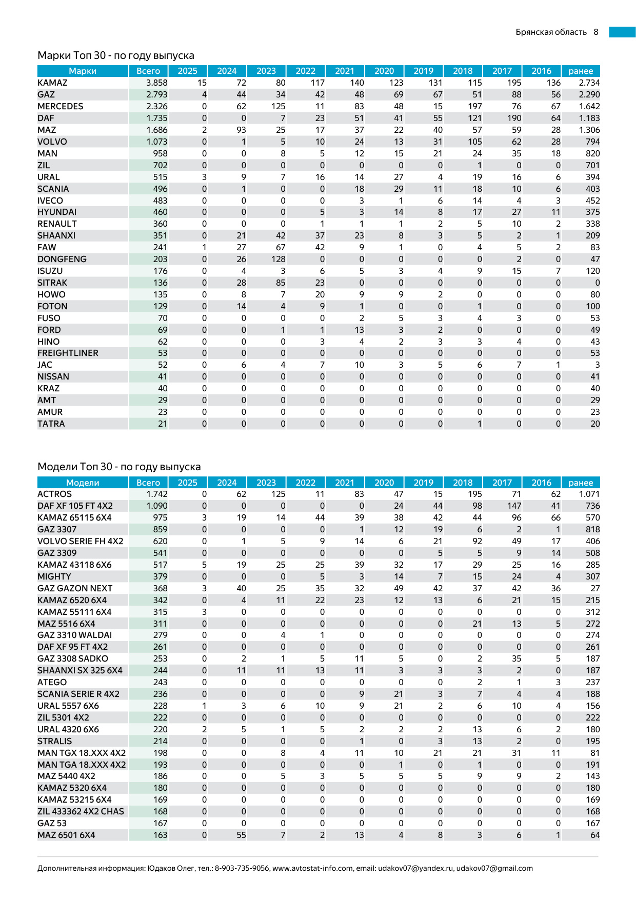 - Разбивка по маркам, моделям и году выпуска