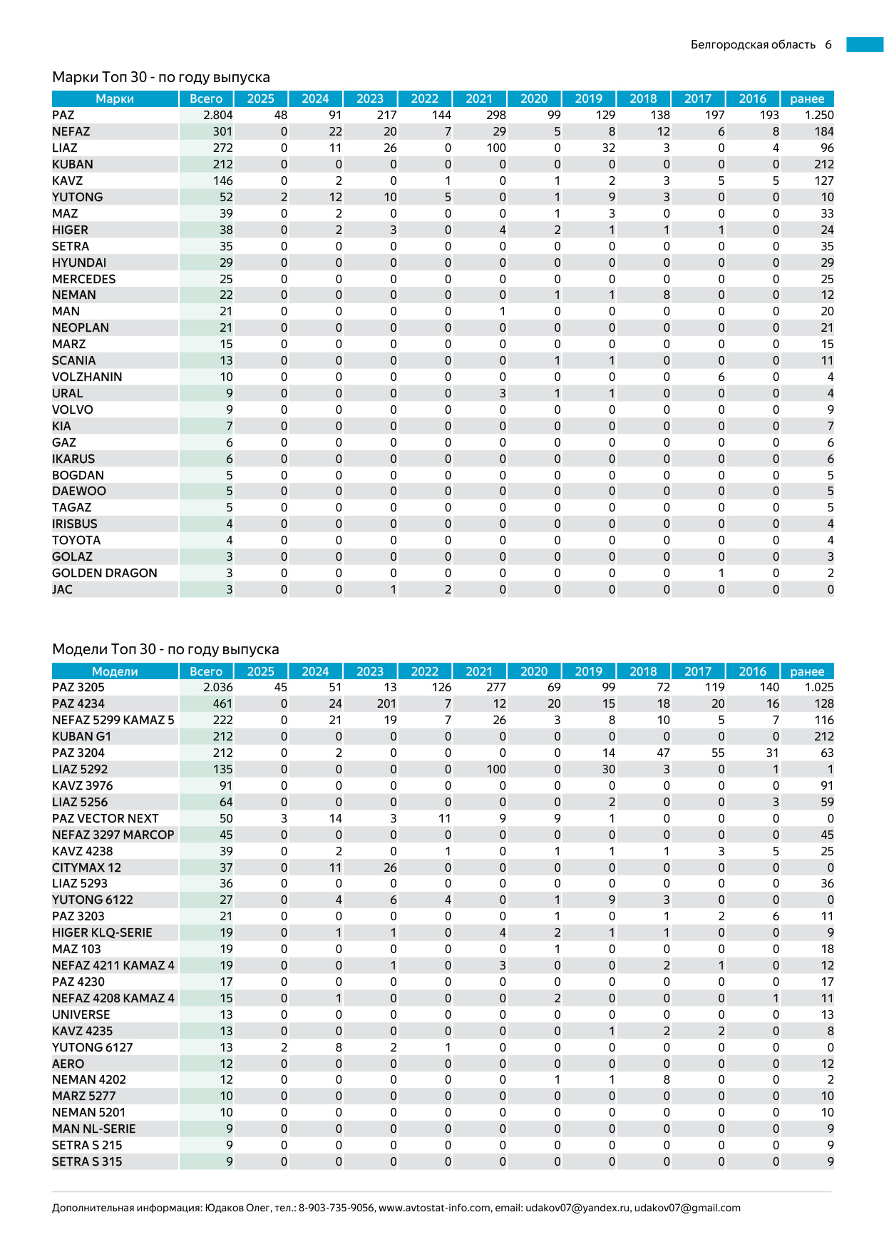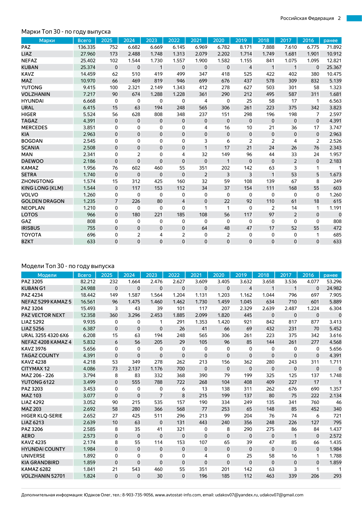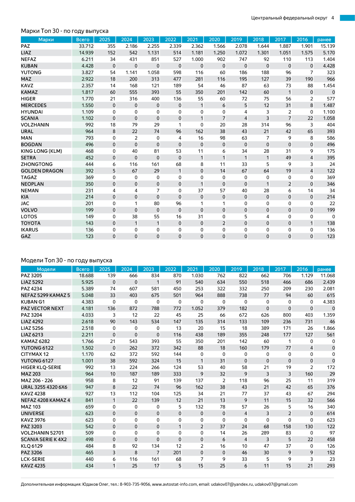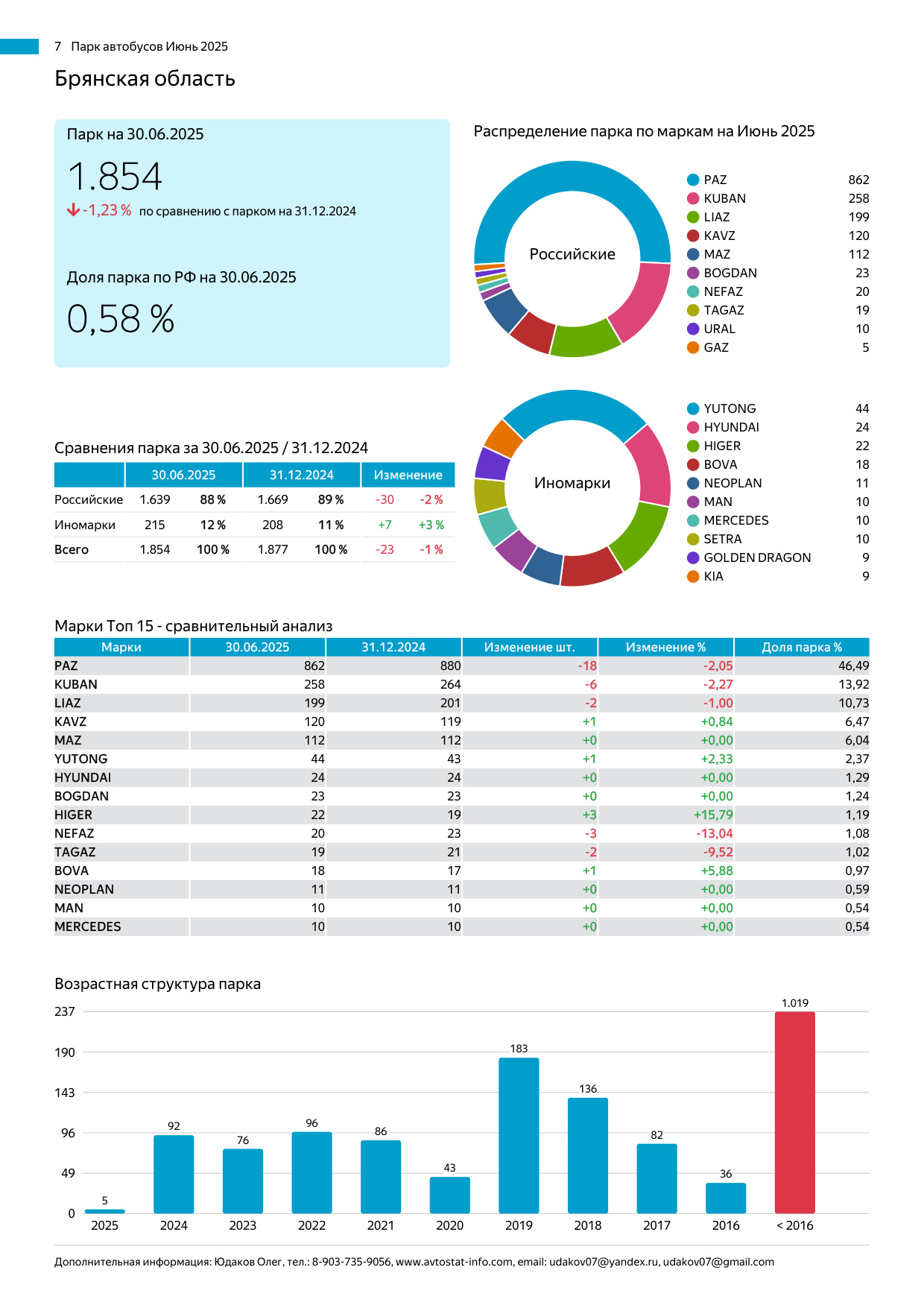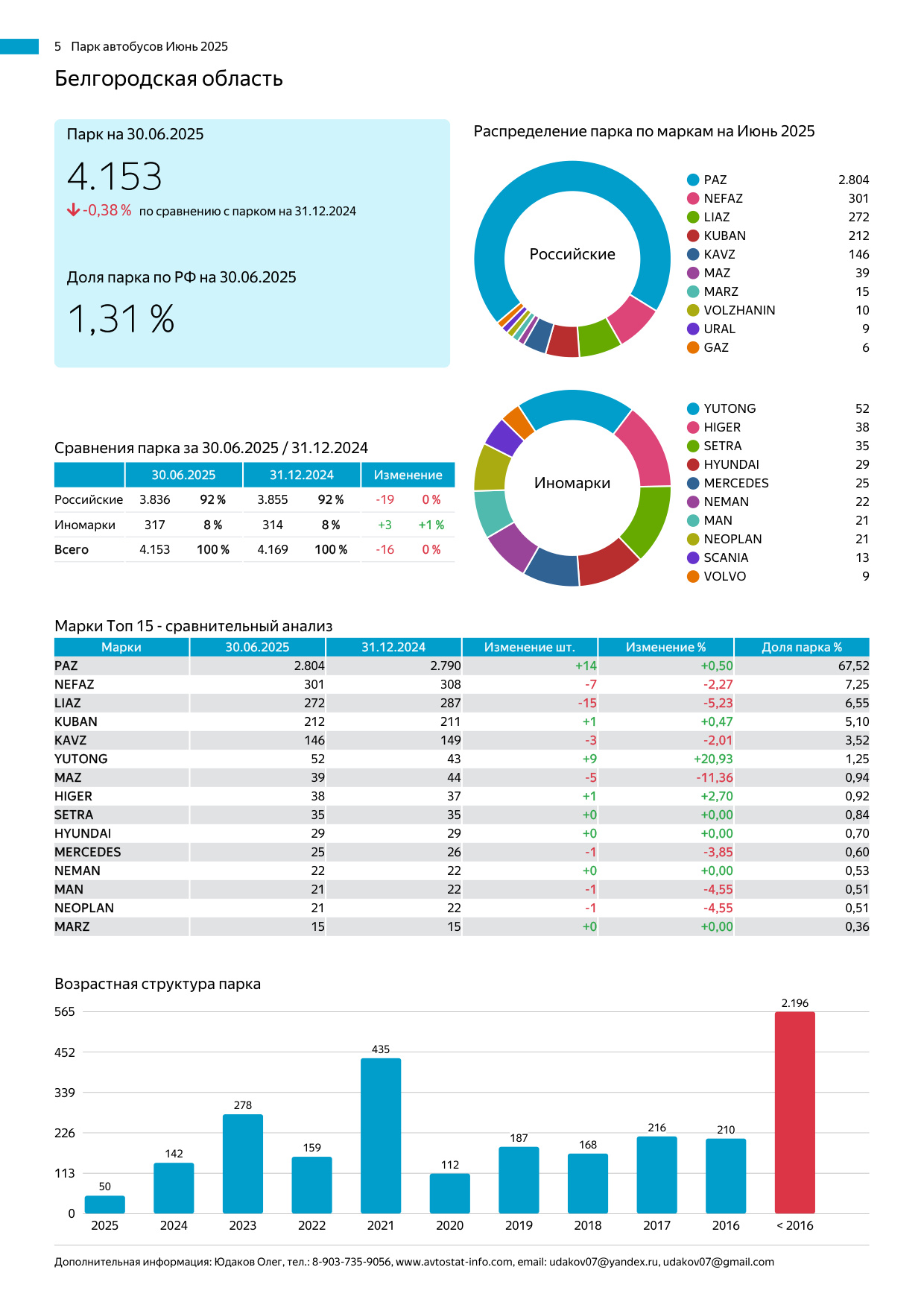 Полугодовой отчёт о структуре зарегистрированного автомобильного парка России.